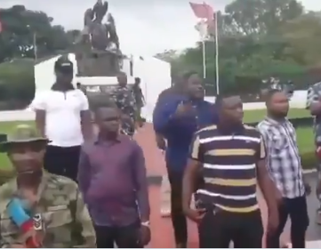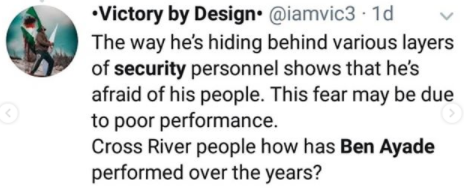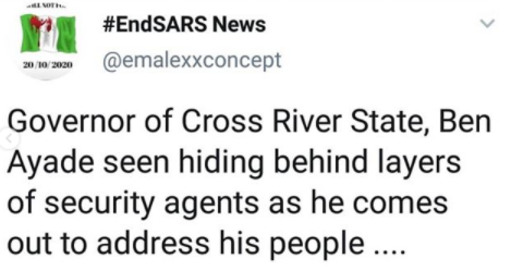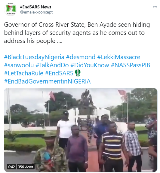Cross River State Governor, Ben Ayade seen "behind layers of security" as he addresses his people following days of vandalism (video) appeared first on